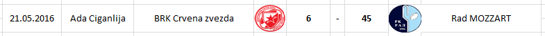 Sastale su se ekipe BRK Crvene zvezde i Rad MOZZART. Građevinari su slavili rezultatom 45-6 (14-6). Treba napomenuti da su juniori krenuli nešto kasnije u zvanično takmičenje ali da su imali veoma intenzivnu sezonu do sad. Krajem marta je U18 reprezentacija Srbije igrala Evropsko prvenstvo u Andori, zatim su mladi obeležili takmičenje 10ka.rs da bi na kraju ostvarili nastupe i u B ligi Prvenstva Srbije. Obe ekipe su borbeno ušle u utakmicu, što pokazuje rezultat na poluvremenu 14-6 u korist Rada, ali su Građevinari iskusno priveli utakmicu do kraja. Očekuju nas do kraja Kupa Srbije još dve veoma uzbudljive i neizvesne utakmice.